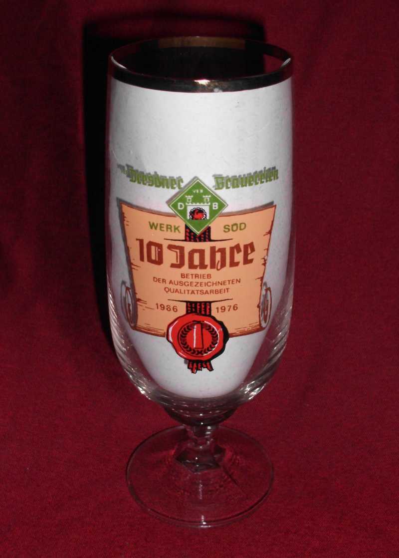 Aufschrift : Dresdner Brauereien, Werk Süd, 10 Jahre Betrieb der augezeichneten Qualitätsarbeit 1966 - 1976