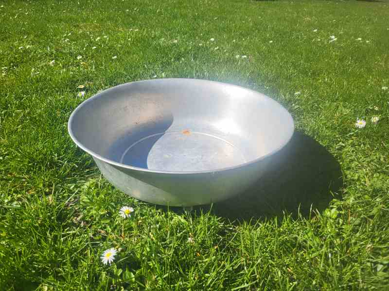 Angeboten wird eine alte Alu Schüssel.
