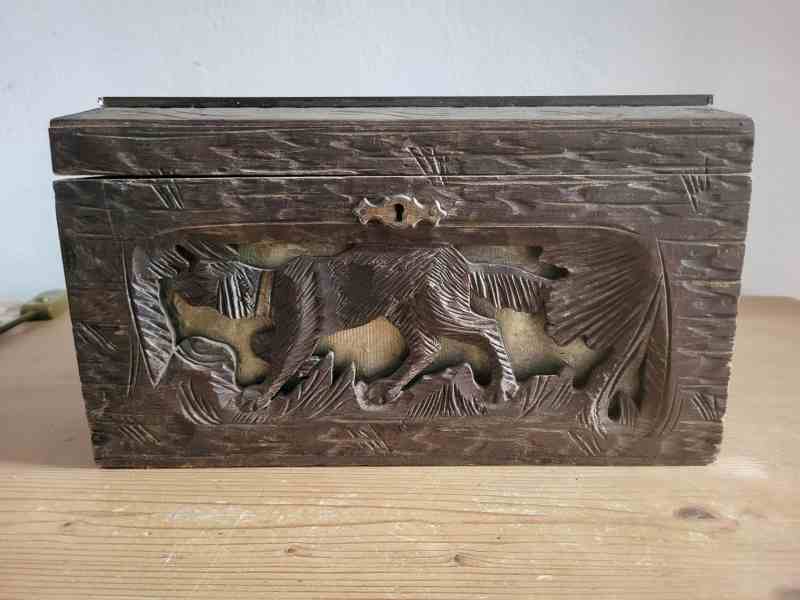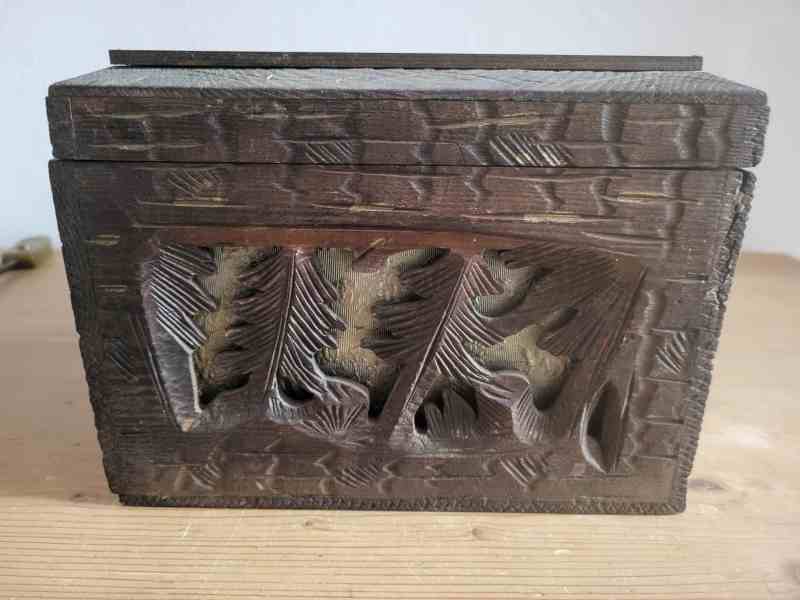 Sie enstand vermutlich um 1890 und ist noch gut erhalten. Schöne Motive und sehr dekorativ. Die Truhe wird im Fundzustand verkauft, etwas verstaubt, kein Holzwurmbefall. Den genauen Zustand bitte den Bildern entnehmen.