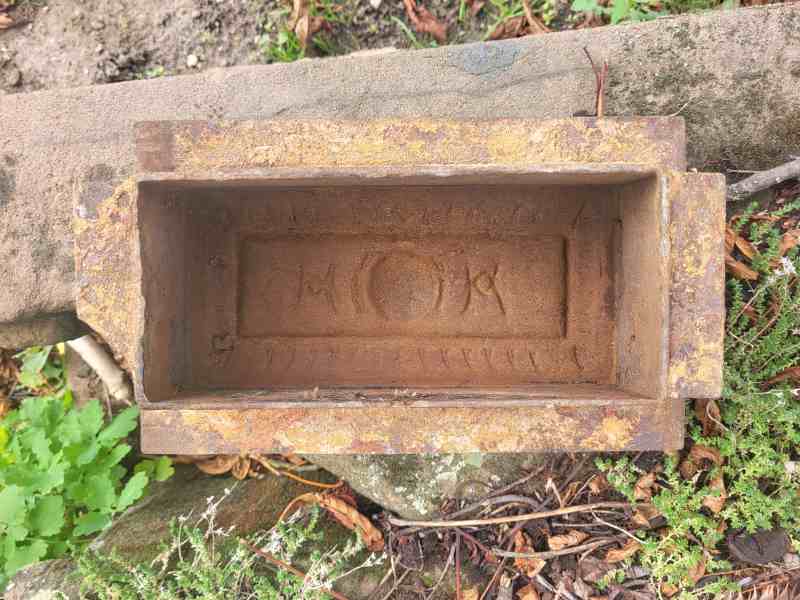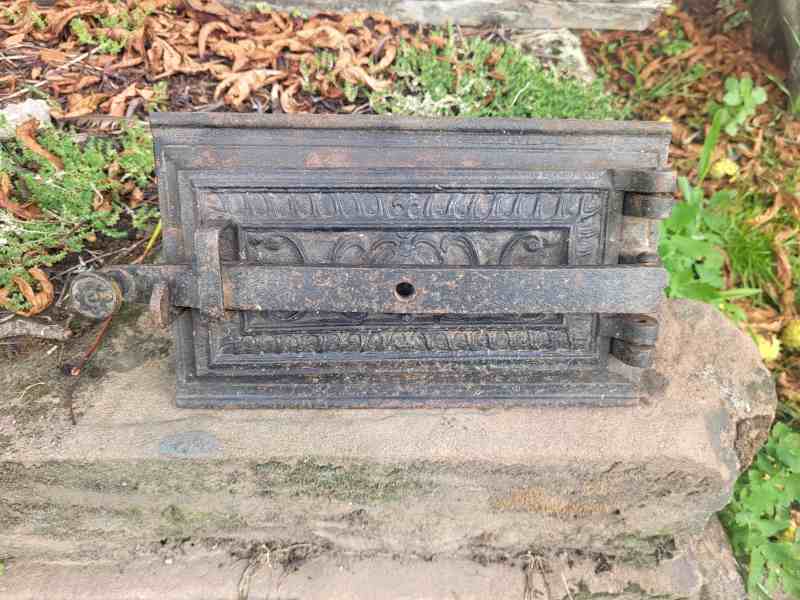 Angeboten wird eine alte Ofentür aus Gußeisen.