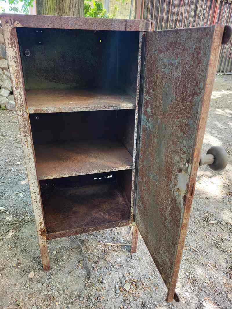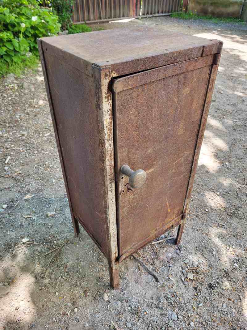 Angeboten wird ein alter Metallschrank.