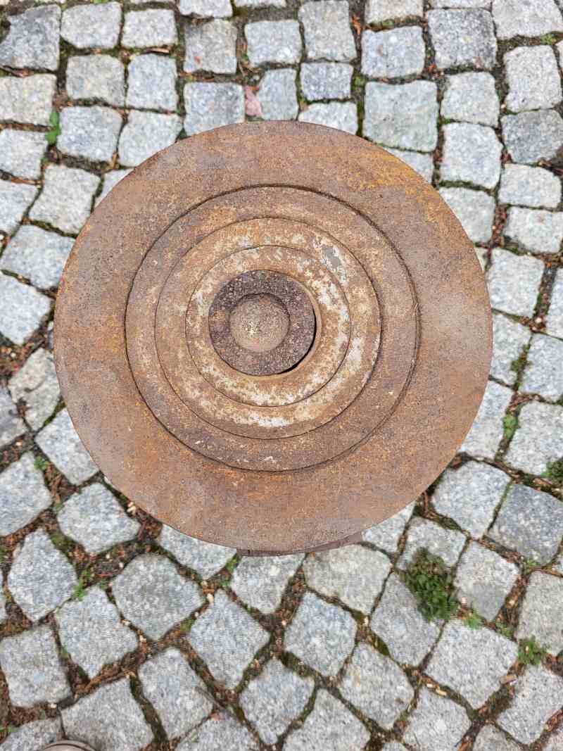 Er ist sehr dekorativ und ein echter Blickfang. Die Platte und die Beine aus Gusseisen. Da der Ofen auch nicht mehr den neuen Vorschriften entspricht, wird er als reine Dekoration verkauft.