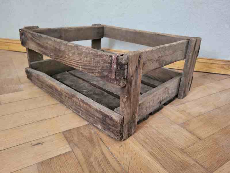 Angeboten wird ein sehr alter Bierkasten aus Holz.