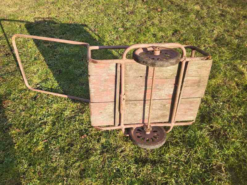 Er ist aus Metall gefertigt, die Bretter auf der Ladefläche könnten mal getauscht werden. Ideal als Dekoration geeignet.