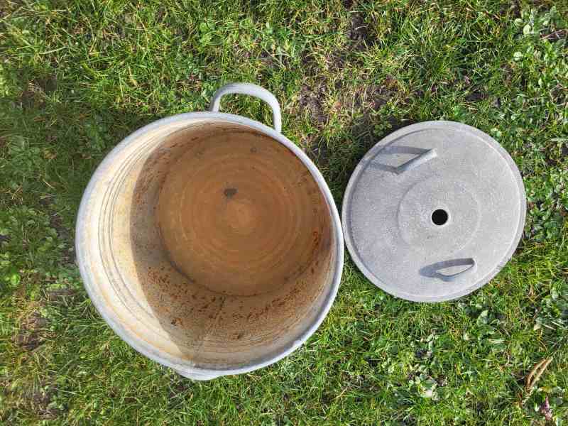 alter Zinktopf, Einwecktopf, Übertopf, Zinktonne, Pflanzkübel