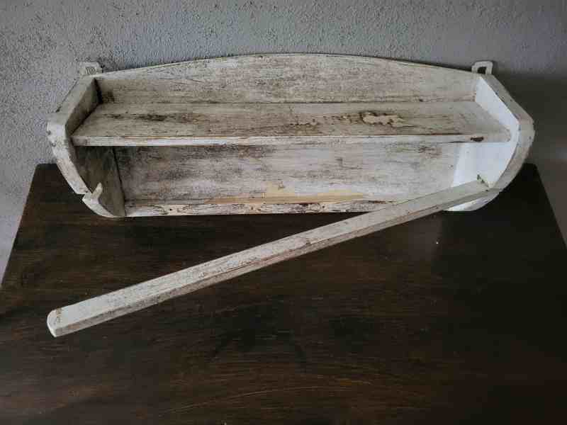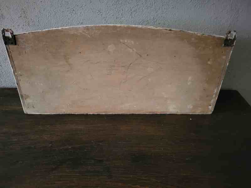 Es besitzt Gebrauchsspuren ist aber stabil und ohne Wurmbefall. Es war mit unterschiedlichen Farben mal gestrichen. Unten waren früher Haken angebracht, die sind aber im Laufe der Jahrzehnte verloren gegangen.