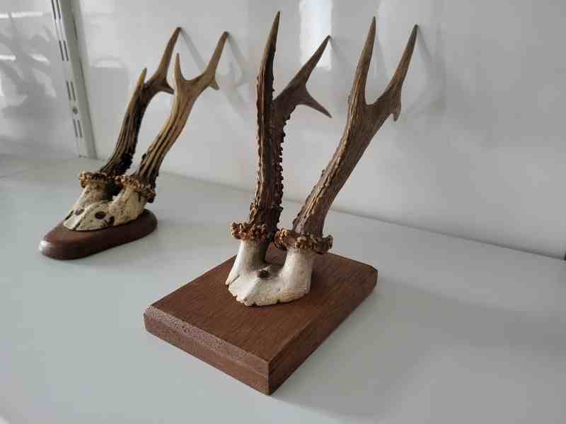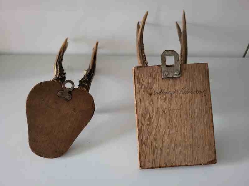 zwei alte Rehbock Geweih, Gehörn, Trophäe