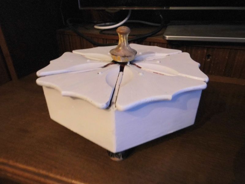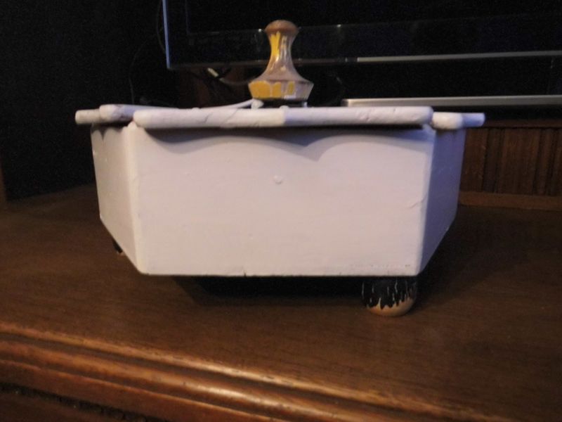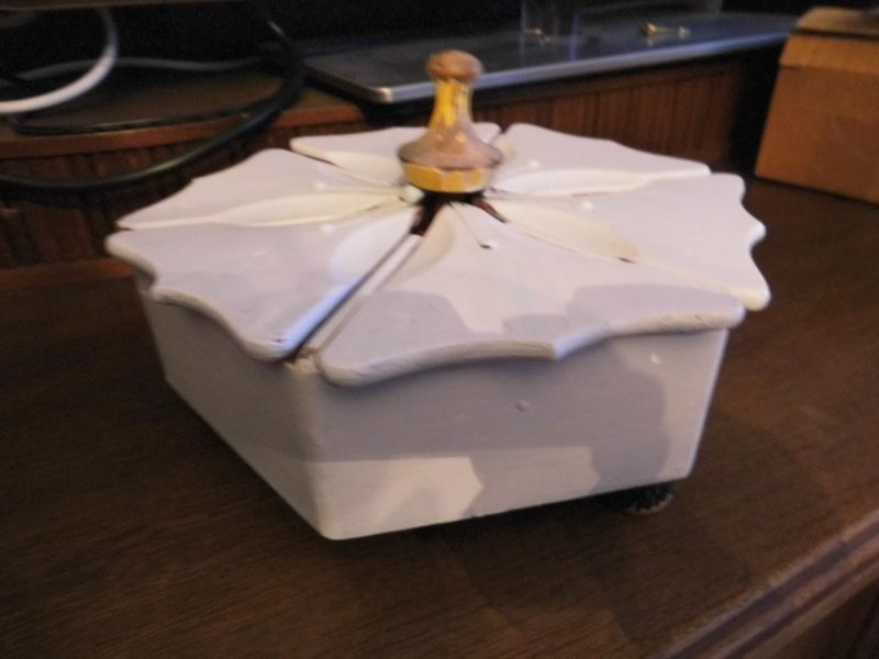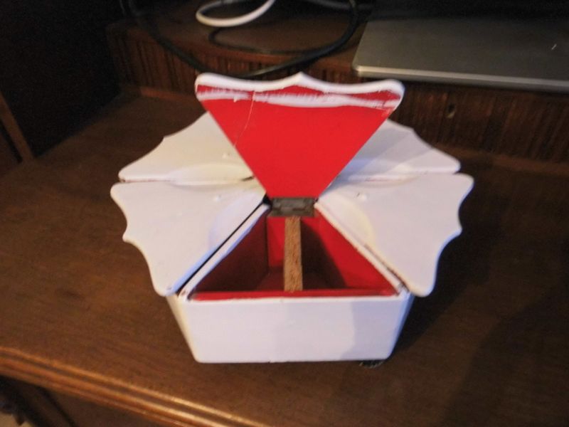 Es ist von der Form aussergewöhnlich und ein echter Blickfang. Aussen wurde es in weiß einmal gestrichen, innen ist es rot. Es ist recht alt und noch gut erhalten, siehe Bilder.