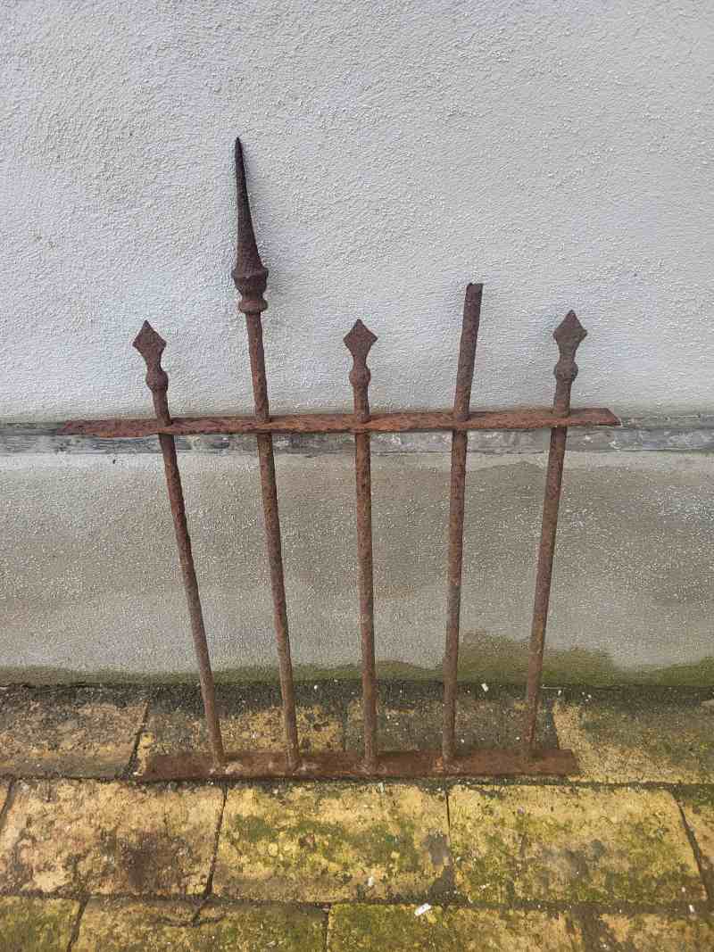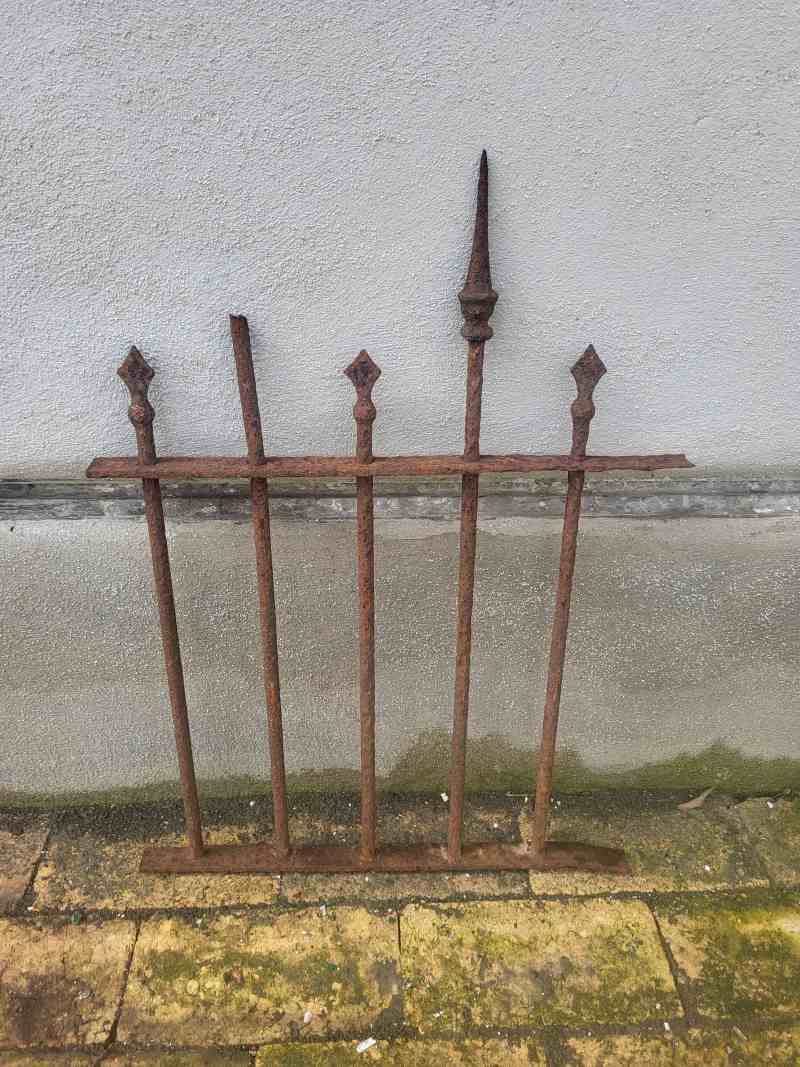 Es ist sehr alt, vermutlich 19 Jahrhundert. Nicht mehr vollständig aber sehr dekorativ. Sehr massive Teil was noch lange ohne Rostschutz den Witterungen standhält.