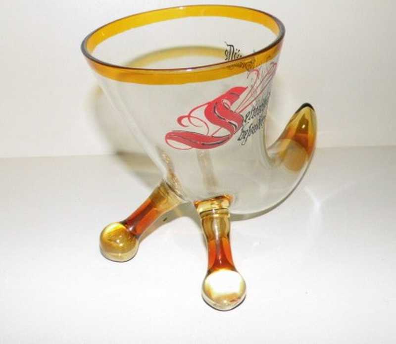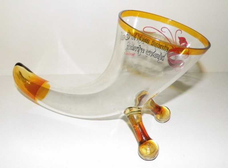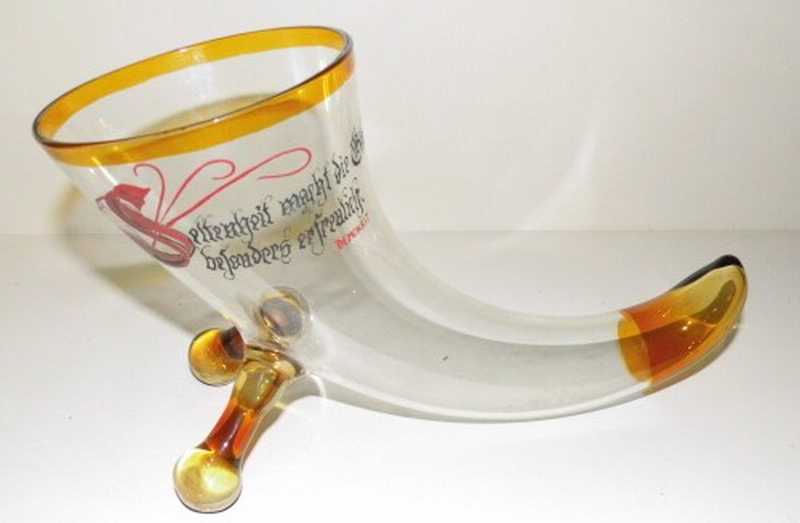 dekoratives Glashorn, Trinkhorn mit Spruch