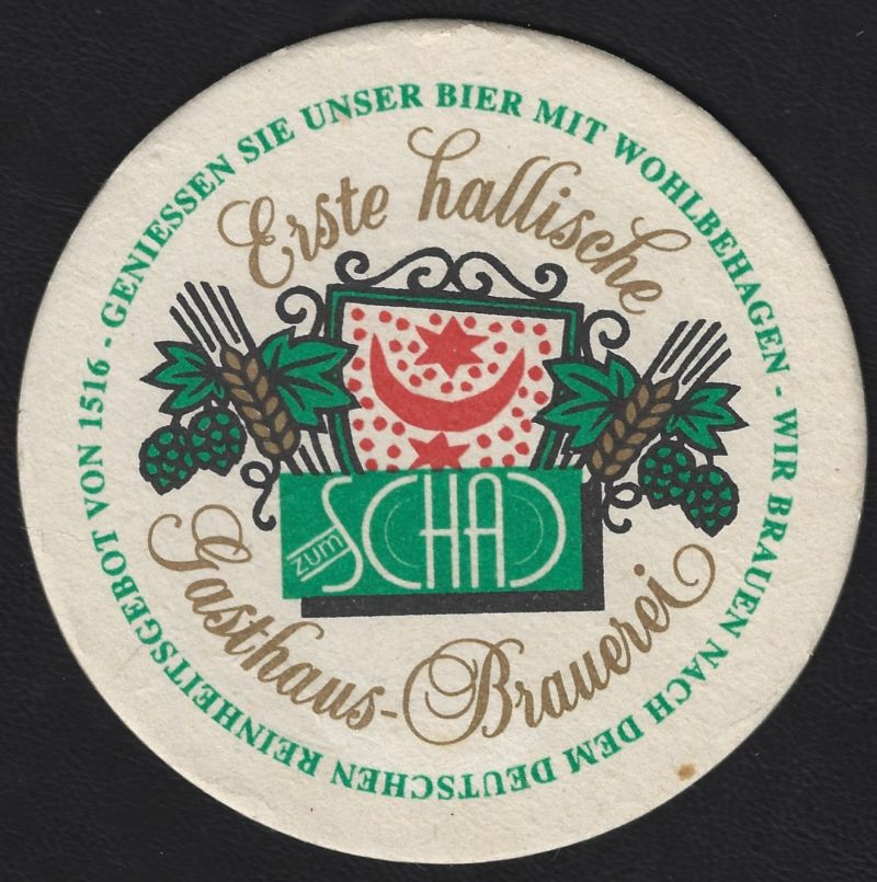 Biete hier einen Bierdeckel von der Hallischen Gasthausbrauerei Schad an