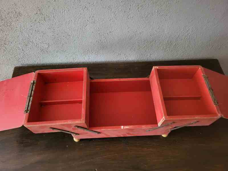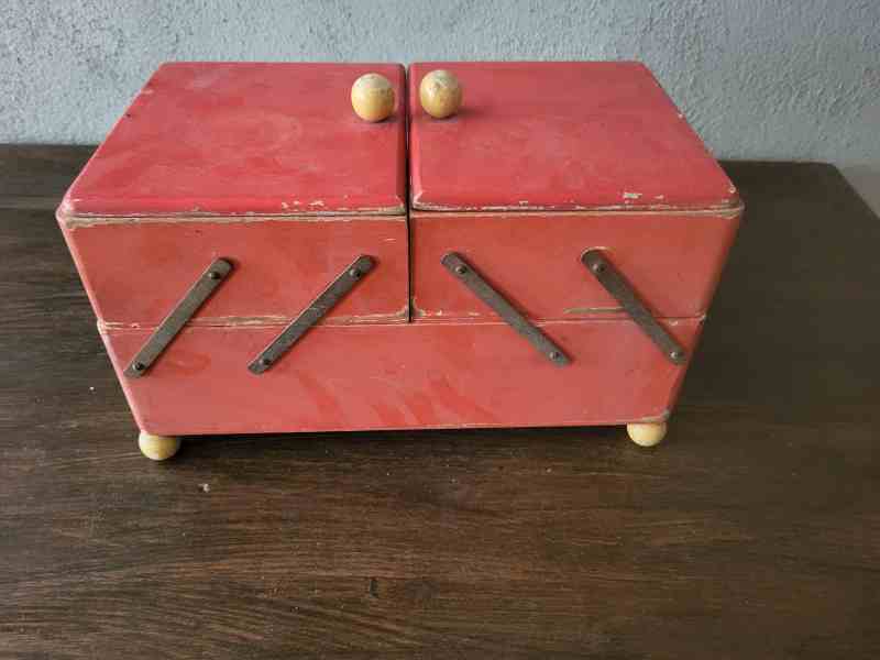 Es besitzt Gebrauchsspuren, hauptsächlich hat der Vorbesitzer länger Nägel für die Befestigung der Scharniere verwendet, sie stehen jetzt etwas heraus und man müsste sie durch kurze Schrauben austauschen, ein Griff seitlich fehlt, ansonsten ist dem Alter entsprechend in einem guten Zustand. Den genauen Zustand bitte den Bildern entnehmen