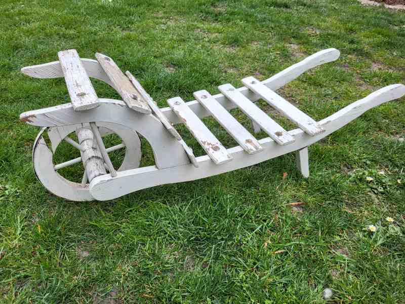 Angeboten wird eine kleine Schubkarre zur Dekoration.