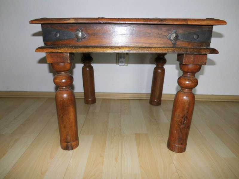 Er ist aus massivem Holz gefertig und besitzt dadurch auch ein entsprechendes Gewicht und Stabilität. Durch seine großen Ziernägel und den seitlichen Beschlägen ein echter Blickfang. Er besitzt keine nennenswerten Gebrauchsspuren und kann sofort in der Wohnung seinen Platz finden.