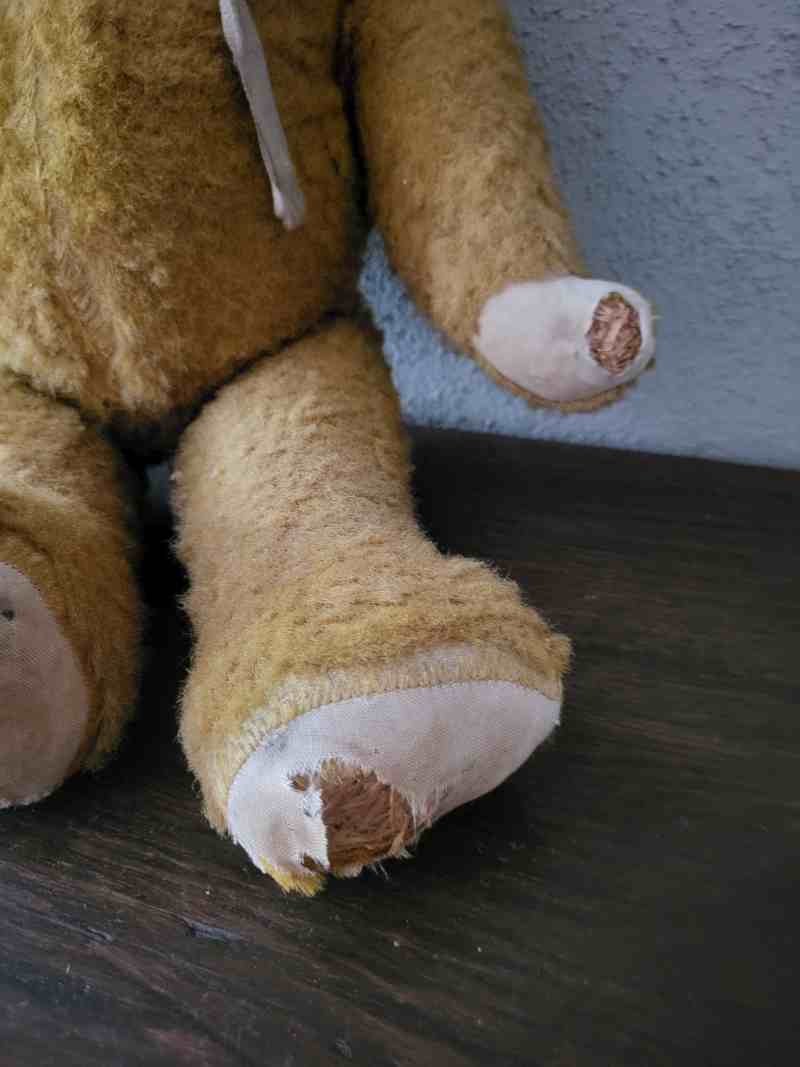 sehr alter Teddybär, Stroh / Holzwolle Füllung
